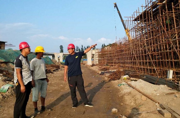 蒙山大街與濱河西路互通立交工程涵蓋橋梁工程和道路工程兩個部分,是四公司近些年來承建的難度較大的一項橋梁工程。該工程建設任務重,施工難度大,公司領導高度重視,委派李素偉為項目經理。有人勸他不要接這“燙手的山芋”,可他卻說:“我是一名黨員,沖鋒在前是每個黨員干部義不容辭的責任?!睉{借這樣的擔當和勇氣,他不畏艱難,勇挑重擔,迅速組建項目部,第一時間帶領施工人員進場施工。進場后,他主動協(xié)調各方關系,上午到濱河公園產權單位,協(xié)調苗木遷移問題,下午趕赴設計院協(xié)調地勘與圖紙設計工作,為工程推進贏得了寶貴時間。施工中,為全面推進工程進度,他充分利用一切資源,采取“多點開花,重點投入”的施工方式,提高工作效率。同時,為避免地下管線施工與其他工序沖突,他安排技術人員對現(xiàn)狀地下管線進行詳細摸排,及時確定煤氣、自來水、國防光纜等管線的準確位置,并將相關數(shù)據提供給設計院,為工程后續(xù)施工奠定了堅實的基礎。