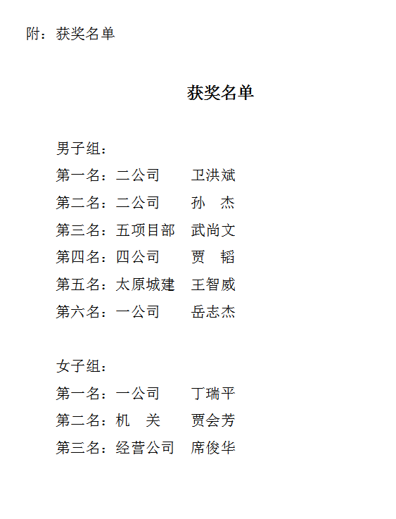 此次比賽分為男子組、女子組進(jìn)行,來自各基層單位、項(xiàng)目部及民建隊(duì)的近三十余名選手參賽。經(jīng)過一天的激烈角逐,分別決出了男子前六名和女子前三名,并現(xiàn)場頒發(fā)了獎(jiǎng)狀和獎(jiǎng)品。黨委委員、監(jiān)事會(huì)主席、工會(huì)主席馮忠對獲獎(jiǎng)選手表示祝賀,并希望大家積極參加市總工會(huì)組織的活動(dòng),將運(yùn)動(dòng)場上的拼搏精神發(fā)揚(yáng)到干事創(chuàng)業(yè)中,為推動(dòng)企業(yè)高質(zhì)量發(fā)展注入新的生機(jī)和活力。