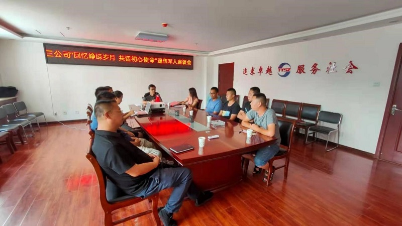 8月1日,三公司召開“回憶崢嶸歲月 共話初心使命”退伍軍人座談會。共11人參加了會議。會上,大家一同觀看了視頻《人民軍隊(duì)的擔(dān)當(dāng)》。大家分別介紹自己的軍旅生涯,并結(jié)合自己的工作實(shí)際,就如何發(fā)揚(yáng)軍人風(fēng)采、不忘初心、堅(jiān)持釘釘子精神暢所欲言。經(jīng)理栗建軍、黨支部書記郭娟娟向退伍軍人們致以節(jié)日祝賀,勉勵(lì)大家要在工作中帶頭弘揚(yáng)正氣,踐行“退伍不褪色,退役不退志”的錚錚誓言。