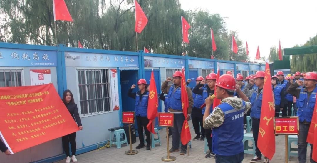 會(huì)上,三公司經(jīng)理栗建軍介紹了濱河自行車(chē)專(zhuān)用道工程一標(biāo)段工程概況及施工進(jìn)展情況。該工程道路負(fù)責(zé)人、三公司副經(jīng)理柳文斌宣讀了《太原市政集團(tuán)第三工程公司濱河自行車(chē)道一標(biāo)段“五亮五比五創(chuàng)”勞動(dòng)競(jìng)賽實(shí)施方案》。參會(huì)領(lǐng)導(dǎo)為以工區(qū)負(fù)責(zé)人姓名命名的5個(gè)工區(qū)授旗,全體參建人員進(jìn)行集體宣誓。集團(tuán)公司勞動(dòng)模范、該工程橋梁負(fù)責(zé)人、三公司副經(jīng)理郝俊軍分享了他的奮斗故事。第七工區(qū)負(fù)責(zé)人武瑞杰代表各工區(qū)進(jìn)行表態(tài)發(fā)言,表示將自我加壓、勇挑重?fù)?dān),為濱河自行車(chē)專(zhuān)用道工程決戰(zhàn)攻堅(jiān)貢獻(xiàn)青春智慧和力量。