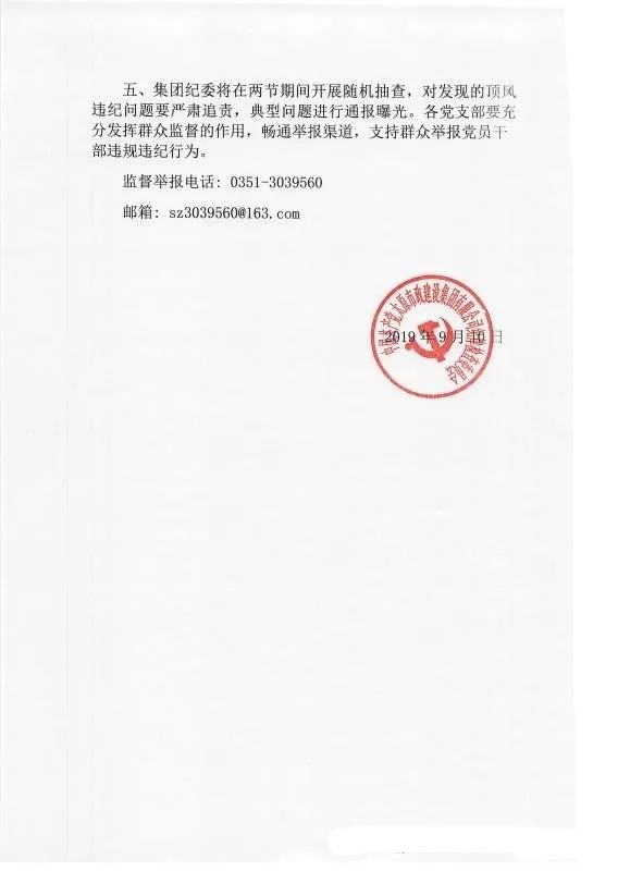 太原市政建設集團有限公司關于嚴明“中秋、國慶”期間有關紀律要求的通知