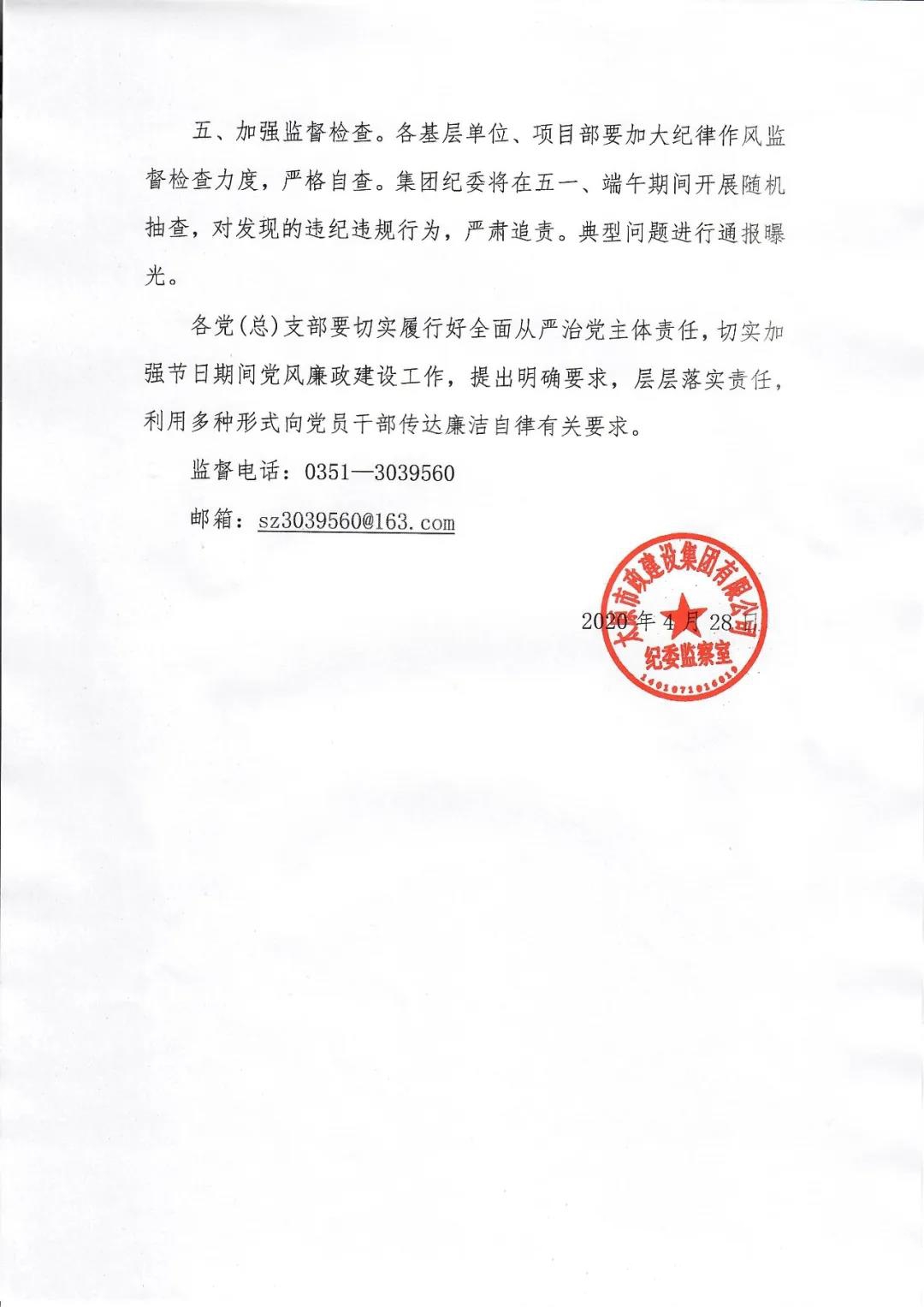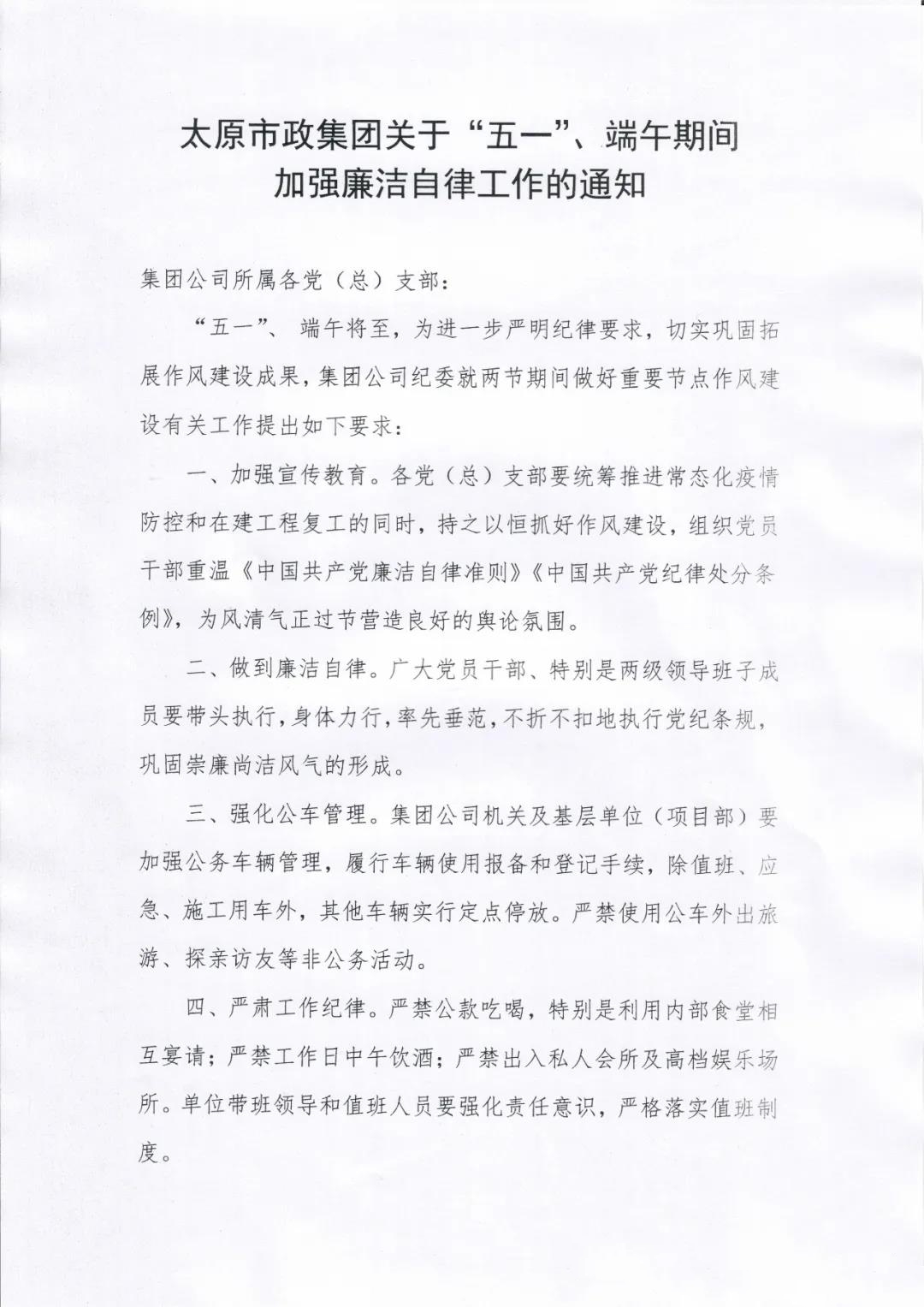 太原市政集團(tuán)關(guān)于“五一”、端午期間加強(qiáng)廉潔自律工作的通知