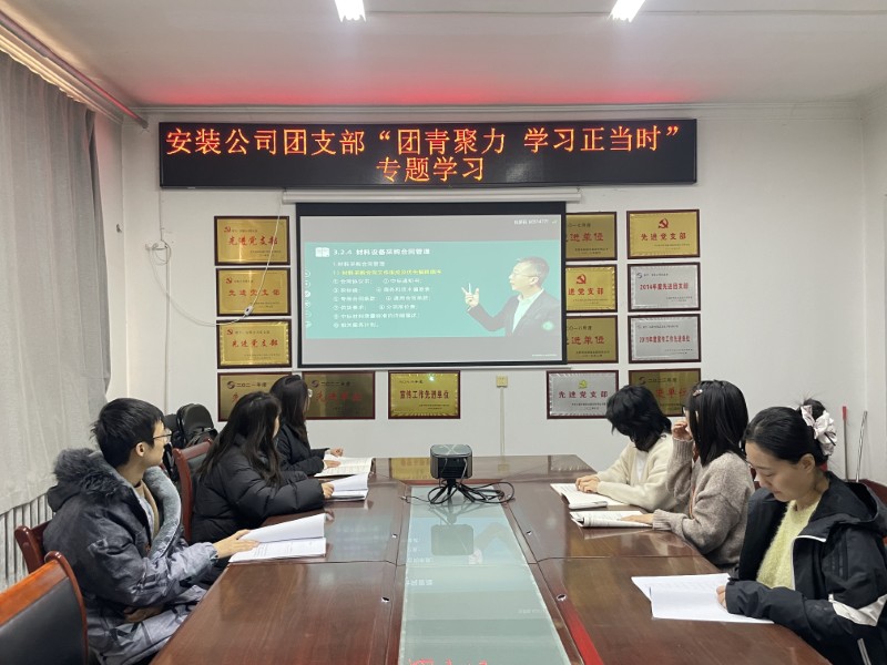 2月18日,安裝公司團支部開展“團青聚力 學習正當時”專題學習活動,此次活動旨在幫助團員青年扎實掌握專業(yè)知識,為今后的工作奠定堅實基礎,通過學習《建設工程項目管理》中的“材料設備采購合同管理”內(nèi)容,大家認識到要始終保持終身學習的理念,使知識和本領與承擔的工作相適應,為企業(yè)發(fā)展注入強勁動能。