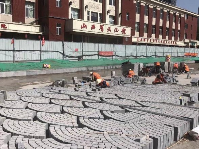 在二公司承建的太原市五一廣場改造工程市政道路改造及管網(wǎng)工程的施工現(xiàn)場,廣場西路、廣場環(huán)路、廣場東路、迎澤南街四條道路正在緊鑼密鼓地進行扇形花崗巖丁石鋪裝作業(yè),一條宛如銀杏葉鋪設(shè)的美麗道路逐漸出現(xiàn)在市民眼前。