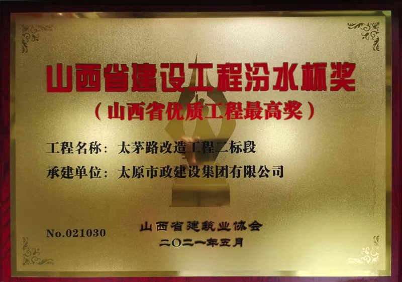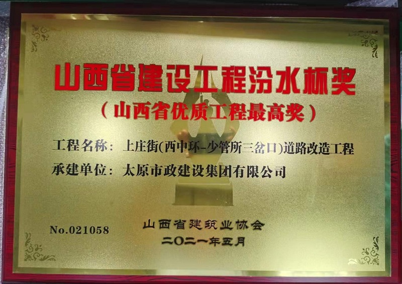 近日,集團(tuán)公司承建的太茅路改造工程二標(biāo)段、臥虎山快速路建設(shè)工程一標(biāo)段、上莊街(西中環(huán)—少管所三岔口)道路改造三項(xiàng)工程喜獲山西省建筑業(yè)協(xié)會(huì)頒發(fā)的2020年度“汾水杯獎(jiǎng)”。這一獎(jiǎng)項(xiàng)是山西省建設(shè)工程質(zhì)量最高獎(jiǎng),是我省唯一與魯班獎(jiǎng)、國(guó)家優(yōu)質(zhì)工程獎(jiǎng)、安裝之星獎(jiǎng)等國(guó)家級(jí)工程建設(shè)獎(jiǎng)項(xiàng)接軌的獎(jiǎng)項(xiàng)。