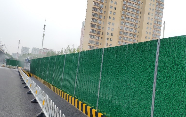 由于施工場地臨近居民區(qū),項目部抓實抓牢現(xiàn)場安全施工管理,重點部署警示牌、施工圍擋、灑水降塵等設施,積極營造安全文明施工環(huán)境。在溝槽開挖路段,統(tǒng)一制作標準防護圍欄,懸掛警示標識,嚴格控制人員出入施工場地;在臨近居民區(qū)路段,修建便民通道,并在出口處設置警示欄桿,懸掛安全警示牌,張貼夜間反光貼,保障居民出行安全;在未完全封閉施工路段,項目部采用活動鐵馬和警戒線進行隔離,夜間路口放置爆閃燈,并設專人進行監(jiān)管,保證施工現(xiàn)場安全有序;同時,項目部在東中環(huán)全線圍擋處加設噴淋設施,對所有裸露作業(yè)面使用綠網(wǎng)進行覆蓋并定時灑水降塵,營造綠色安全施工環(huán)境。
