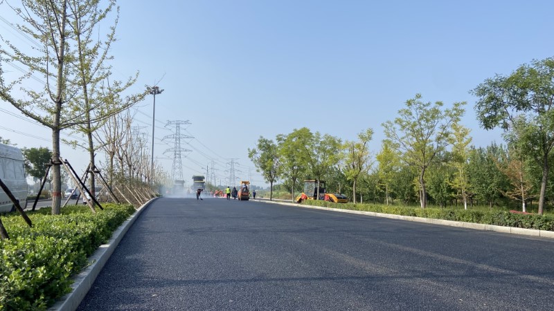 施工現(xiàn)場,兩臺攤鋪機、四臺壓路機、十多輛運料車正在緊張施工中……隨著一車車滾燙的瀝青被攤鋪到地面,冒著刺鼻的熱氣,大家來不及擦拭臉上的汗水,緊隨攤鋪機,用手里的摟耙不停地平整著粒料。攤鋪過程中,測量員嚴格把控高程,時刻監(jiān)測相關數(shù)據,質檢員全程盯守,實時監(jiān)控鋪筑溫度和厚度,嚴把施工質量,施工員協(xié)調機械確保施工段連續(xù)鋪筑......9月11日至13日,在全體施工人員的共同努力下,一公司濱河東路南延二期工程施工一標段道路上面層瀝青混凝土全部鋪筑完畢。