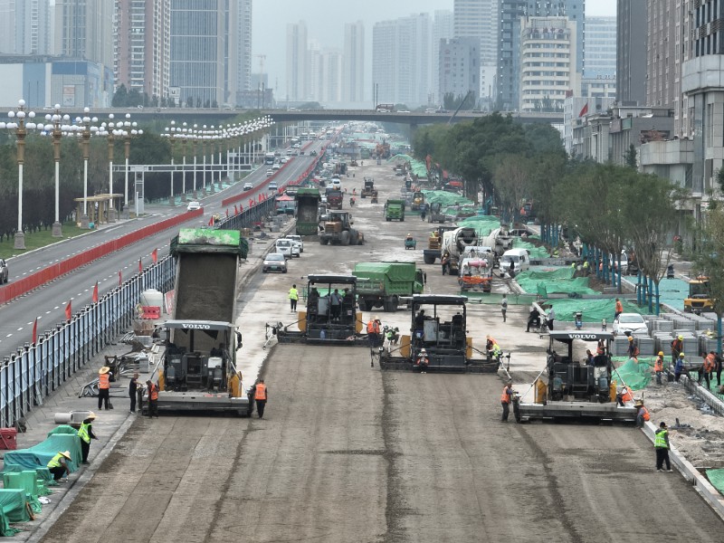 太原市政集團堅持“精準、精細、精致”施工理念,始終以“零容忍”態(tài)度對待質(zhì)量細節(jié),以“全過程”思維把控施工環(huán)節(jié),緊盯鋼板樁支護、溝槽回填、水穩(wěn)瀝青攤鋪、花崗巖鋪裝等關(guān)鍵環(huán)節(jié),全力打造既擁有堅固挺拔內(nèi)在骨架,更展現(xiàn)靚麗宜居嶄新面貌的城市主干道。全周期筑牢地下“安全防線”,嚴格控制鋼板樁施打全過程,按照“先支后拆、分段拔除”原則有序進行,最大限度減少土體擾動,實現(xiàn)安全施工與環(huán)境保護和諧統(tǒng)一;全流程精控管網(wǎng)“堅固壁壘”,重點控制基底處理質(zhì)量,對軟弱地基進行換填加固,采用分層回填工藝,及時進行壓實度檢測,真正做到“一層一驗、壓實到位”;全方位筑牢道路“內(nèi)在骨架”,采用機械化作業(yè)模式,嚴格執(zhí)行“先輕后重、先邊后中、先慢后快”規(guī)范流程, 全程緊盯拌合、運輸、溫度等關(guān)鍵環(huán)節(jié),精準控制標高與平面位置,保障各工序銜接無縫順暢;全環(huán)節(jié)細究扮靚“民生畫卷”,嚴格執(zhí)行材料遴選標準,采用“試鋪—校正—精鋪”工藝流程,確保接縫寬度保持均勻一致,達到平整美觀、堅固耐用的質(zhì)量要求。