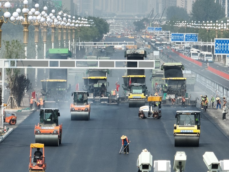 面對(duì)全長(zhǎng)4.3公里的施工戰(zhàn)線,租賃公司和路面公司展現(xiàn)了高度的專業(yè)協(xié)作與責(zé)任擔(dān)當(dāng)。租賃公司科學(xué)調(diào)度大量大型機(jī)械設(shè)備,包括銑刨機(jī)、壓路機(jī)和攤鋪機(jī)等,按照施工計(jì)劃分批次進(jìn)場(chǎng),確保了“分段流水、平行作業(yè)”模式的高效運(yùn)轉(zhuǎn)。通過(guò)精準(zhǔn)匹配機(jī)械供應(yīng)與作業(yè)面規(guī)劃,他們?yōu)楣こ烫峁┝藞?jiān)實(shí)的設(shè)備保障,同時(shí)嚴(yán)格執(zhí)行機(jī)械操作安全規(guī)程,有效管控高風(fēng)險(xiǎn)作業(yè)環(huán)節(jié)。在機(jī)械設(shè)備充足的同時(shí),路面公司聚焦道路施工的質(zhì)量與精細(xì)化管理。在完成地下管網(wǎng)改造工程后,他們迅速推進(jìn)路面工程施工進(jìn)度,實(shí)施水穩(wěn)、瀝青鋪筑工作。面對(duì)高溫和雨季的持續(xù)挑戰(zhàn),路面公司施工人員堅(jiān)守一線,嚴(yán)格把控每道工藝,以精益求精的施工質(zhì)量和爭(zhēng)分奪秒的施工速度圓滿完成施工任務(wù),完成全線水穩(wěn)和瀝青的攤鋪工作。租賃公司和路面公司通過(guò)與施工單位的緊密配合,展現(xiàn)了同心協(xié)力、協(xié)同作戰(zhàn)的施工風(fēng)采,助力迎澤大街(西段)煥新升級(jí),彰顯了太原市政集團(tuán)的專業(yè)水準(zhǔn)與責(zé)任使命。
