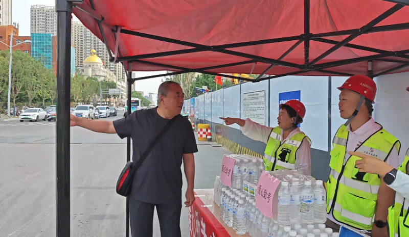 施工過(guò)程中,太原市政集團(tuán)作為主要施工單位,積極統(tǒng)籌協(xié)調(diào),主動(dòng)與園林、電力、自來(lái)水、熱力等平行施工單位溝通,在全力推進(jìn)工程進(jìn)度的同時(shí),為各參建單位留好施工作業(yè)面,合理安排平行、交叉作業(yè),確保工程順利推進(jìn),跑出施工“加速度”。為妥善平衡民生保障與工程建設(shè)雙重需求,太原市政集團(tuán)主動(dòng)擔(dān)當(dāng)、積極作為,主動(dòng)聯(lián)動(dòng)交通、城管等部門,采取多項(xiàng)舉措,避免影響周邊居民的正常生活。在施工中遵循“修路不添堵”原則,精心制定交通組織方案,設(shè)置應(yīng)急通道、便民通道和低噪音設(shè)備,并安排交通協(xié)管員在地鐵口等關(guān)鍵部位現(xiàn)場(chǎng)指揮、引導(dǎo)行人,為市民出行提供便利條件,將“讓市民少繞一米路,少踩一個(gè)水坑”融入深夜巡查便道安全的腳步,化作施工與民生和諧共生的溫暖注腳;實(shí)施“半幅施工+分段施工+動(dòng)態(tài)導(dǎo)改”策略,與交警部門合作,優(yōu)化交通信號(hào)燈配時(shí),有效緩解施工對(duì)市民出行的影響;中高考期間,積極開(kāi)展“為夢(mèng)護(hù)航 愛(ài)心助考”志愿服務(wù)活動(dòng),全線工地按下“靜音鍵”,在關(guān)鍵路口設(shè)立助考點(diǎn),配備礦泉水、防暑降溫藥品等,并為考生開(kāi)放綠色通道,以實(shí)際行動(dòng)助力中高考;在施工現(xiàn)場(chǎng)設(shè)置安全警示標(biāo)志和施工公告牌,及時(shí)告知市民施工進(jìn)展和注意事項(xiàng),增強(qiáng)市民對(duì)施工的理解和支持;組織施工人員進(jìn)行城市家具的及時(shí)進(jìn)場(chǎng)和質(zhì)量檢驗(yàn)工作,在全線開(kāi)展城市家具安裝作業(yè),將一批兼具現(xiàn)代風(fēng)格與太原特色的公交站臺(tái)、休閑座椅、分類垃圾箱等設(shè)施安裝到位,這些融合功能與美學(xué)的城市家具,已成為迎澤大街沿線的新亮點(diǎn),不僅提升了城市空間的品質(zhì),更展現(xiàn)出太原深厚的人文關(guān)懷與現(xiàn)代城市風(fēng)貌。全體施工人員以高度的責(zé)任感和使命感,將品質(zhì)與關(guān)懷融入到每一個(gè)細(xì)節(jié)中,用實(shí)際行動(dòng)詮釋了“以人為本,和諧共建”的施工理念。