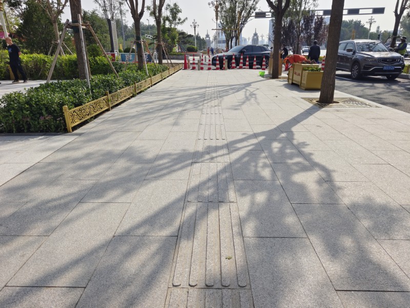 漫步在嶄新的大街上,目光所及之處,皆是精益求精的印記。道路之舒,成于“毫米級”的精準(zhǔn)把控。施工期間,測量員們頂著烈日反復(fù)校驗基準(zhǔn)線,施工人員緊盯碾壓遍數(shù)、實時檢測溫度變化,精準(zhǔn)調(diào)控機(jī)械參數(shù),細(xì)致觀察路面成型狀態(tài),以雕琢藝術(shù)品的嚴(yán)謹(jǐn),執(zhí)著于每一寸路面的平整度。如今,瀝青路面黝黑發(fā)亮,平整如鏡,為市民提供了平穩(wěn)舒適的出行體驗。這背后,是無數(shù)次的測量、復(fù)核與調(diào)整,是對“毫米級”標(biāo)準(zhǔn)的執(zhí)著追求。路面之穩(wěn),源于看不見的“精細(xì)打磨”。以往容易產(chǎn)生異響和顛簸的檢查井蓋,如今,它們已與路面完美契合,渾然一體。市政人創(chuàng)新工藝,全程采用三米直尺嚴(yán)格檢測井具與瀝青路面的銜接平整度,對井周進(jìn)行精細(xì)找平加固,顯著提升了行車安全與舒適度。設(shè)施之雅,藏在細(xì)節(jié)里的“民生溫度”。道路品質(zhì)不僅在于行車體驗,更體現(xiàn)在人性化與美觀化兼具的附屬設(shè)施。人行道磚平整牢固,灌縫飽滿均勻;路緣石鋪設(shè)筆直如線,接縫打膠平滑嚴(yán)密;阻車樁全面清潔,堅實穩(wěn)固;迎澤大街石磚鋪設(shè),描畫精細(xì),字跡清晰。游園新增的石桌石凳、柔和地?zé)舻仍O(shè)施,打造了溫馨舒適的開放空間。建成后的迎澤大街(西段)“口袋公園”便民化、街角綠地景觀化、公交站臺智能化……已然成為市民閑庭漫步新去處。
