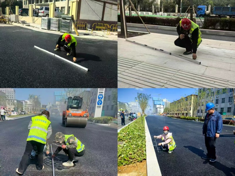 理論與實踐緊密結(jié)合,方能彰顯力量。各在建項目部積極響應(yīng),組建由項目經(jīng)理掛帥,工長、質(zhì)檢員協(xié)同作戰(zhàn)的質(zhì)量檢查小組。他們攜帶測溫儀、塞尺、鋼直尺等專業(yè)工具,深入施工現(xiàn)場,對道路面層與工程材料展開“地毯式”排查,從路面平整度到材料規(guī)格,不放過任何細(xì)微之處,將質(zhì)量管控觸角延伸至施工現(xiàn)場的每一角落,用實際行動守護(hù)工程質(zhì)量的“生命線”。