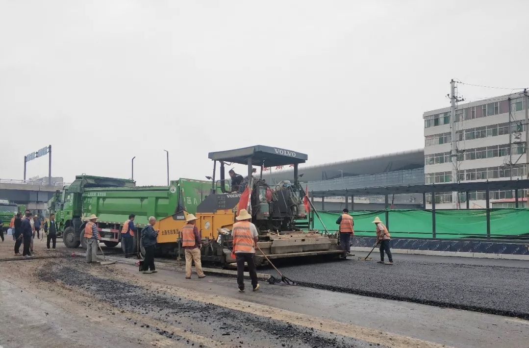 太原市政建設(shè)集團(tuán)有限公司太原南站東廣場(chǎng)配套路網(wǎng)工程龍堡路、光明東街等8條道路下面層瀝青已全部鋪設(shè)完成