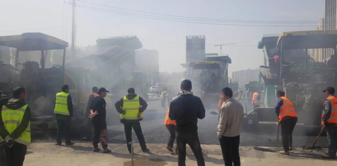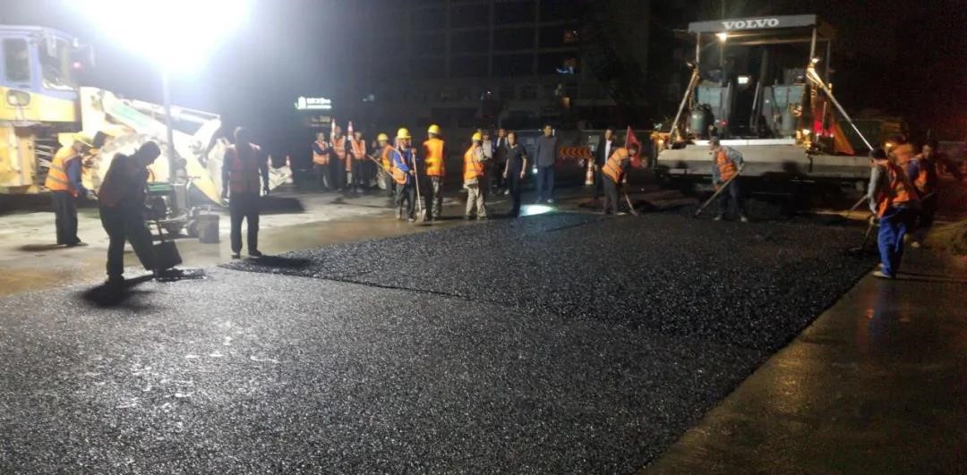 7月8日晚10點,在解放路改造工程與迎澤大街銜接路口的施工現(xiàn)場,新壓實的瀝青攤鋪層正冒著熱氣,伴著“呲呲”的響聲,四周都是高溫彌漫的層層熱浪,一臺攤鋪機和兩臺壓路機剛剛順利完成一整天的工作。駕駛員們臉頰上正大滴大滴流著汗水,脖子上掛著的毛巾已經濕透,仿佛耳邊始終回響著機械的轟鳴聲……還沒有休息的他們,剛端起一杯水,就接到該工程夜間施工的任務。7月9日凌晨2點,工地熱火朝天,機器轟鳴聲不絕于耳,一車車瀝青混合料一字排開,有序卸入攤鋪機內,機械駕駛員們目光堅毅,一絲不茍地操作機械進行鋪瀝青、壓實路面……攤鋪機操作手正謹慎控制著機械向前緩步行進,他時不時低頭觀察路面情況,確保攤鋪層的平整與均勻度。同時,趁著瀝青料的余溫,壓路機緊隨其后,緊跟慢壓,保證壓實壓密面層瀝青。這只是路面施工組工作的縮影,在解放路、水馬路、鐘樓街、植物園等工地都能看到他們忙碌的身影。