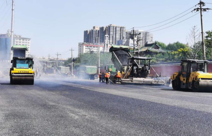 8月13日早上9點(diǎn),隨著攤鋪機(jī)的隆隆聲響,二公司承建的解放路改造工程二標(biāo)段開始中面層瀝青混凝土的攤鋪工作。在施工現(xiàn)場,攤鋪機(jī)齊頭并進(jìn),壓路機(jī)來回穿梭,運(yùn)料車在工作人員的指揮下,正在有條不紊地進(jìn)行作業(yè)。項(xiàng)目部全體施工人員分工明確,測量人員手持水準(zhǔn)儀,對路面標(biāo)高精準(zhǔn)測量,提前測算出鋪設(shè)厚度;質(zhì)檢員頭頂烈日,用測溫計(jì)等設(shè)備,監(jiān)督鋪設(shè)的溫度和厚度,并對瀝青樣品抽樣檢驗(yàn),精細(xì)把控工程質(zhì)量;現(xiàn)場施工人員充當(dāng)臨時交通員,疏通運(yùn)料車,維護(hù)周邊行人秩序,確保攤鋪工作的順利進(jìn)行;材料員盯守施工現(xiàn)場,隨時聯(lián)系供料方,確保瀝青料的及時供應(yīng)……
