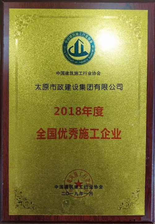 太原市政建設(shè)集團(tuán)有限公司榮獲“2018年度全國(guó)優(yōu)秀施工企業(yè)”榮譽(yù)稱(chēng)號(hào)