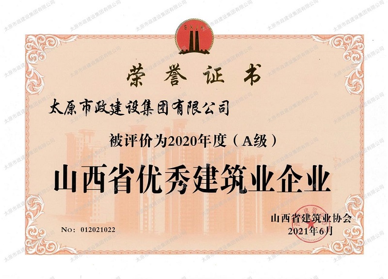 2020年度(A級)山西省優(yōu)秀建筑業(yè)企業(yè)