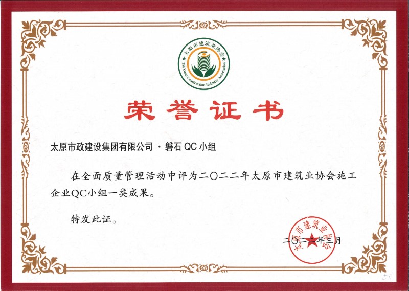 2022年太原市建筑業(yè)協(xié)會施工企業(yè)QC小組二類成果_磐石QC小組